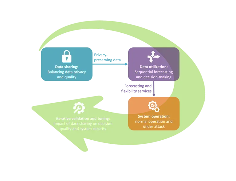 Projektet adresserer to hovedbarrierer for at frigøre energidataens fulde værdi: dataejernes bekymringer om privatliv og cybersikkerhed, og databrugeres manglende adgang til de data, de har brug for til at optimere driften. For at bygge bro mellem disse perspektiver udvikles et banebrydende end-to-end workflow for datadeling og -udnyttelse, som afstemmer interesser og maksimerer systemfordele.